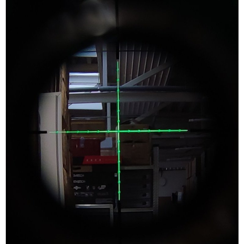 Riflescope from Delta Armory is made of metal. It is mounted on 22 mm RIS rail. The magnification is adjustable from 1 to 6 times. The sight crosshairs are adjustable both horizontally and vertically. The aiming cross has the possibility of backlighting in two colours, red and green and in different luminous intensities from 1 to 5.