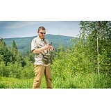 The Essential Kitbag® was designed to hold all essential bushcraft/survival kit. This bag will hold water bottle with cup, folding stove, flashlight, compass, cord, sewing kit etc. All kit is neatly organized in separate pockets. Essential can be carried attached to backpack or belt via MOLLE/PALS or with its own shoulder strap. There is a sleeve on the back that will hold a folding saw/knife/axe. Capacity can be velcro reduced. Extra pouches can be attached at the front side. The Essential Kitbag is an ideal one-day expedition bag to carry all essential stuff.