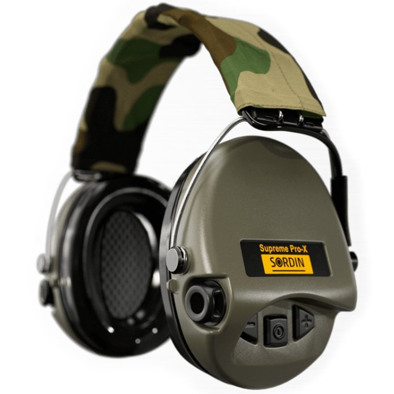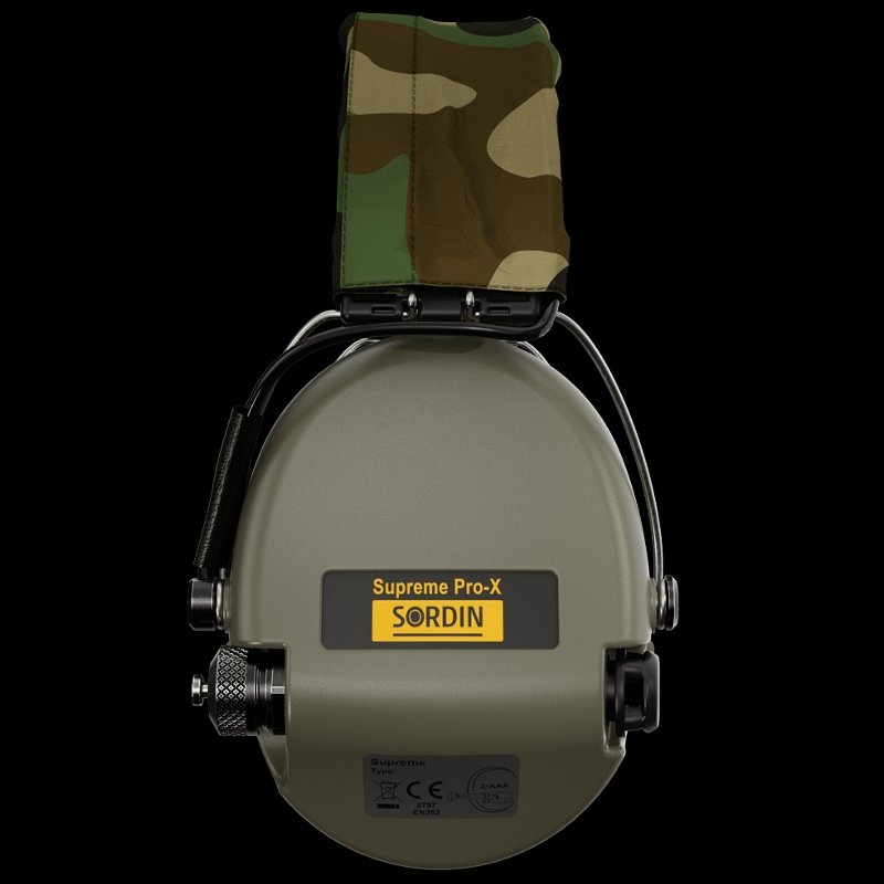 • The Supreme Pro-X ear muff combines optimum protection with high amplification, AUX input and waterproof battery compartment. It is available with green or black cups, with a foldable headband or as a neckband version. As standard it is equipped with a comfortable foam sealing cushion.