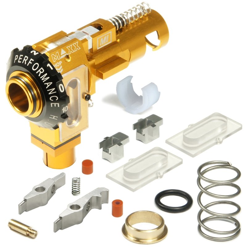 The Hopup Chamber MI unit has a precision rotary dial design for fine hopup adjustments, also re-engineered the hopup levers and concave nubs to work best with R-hop and Standard-Hop to keep the BBs shooting straight and accurate on every single shot.