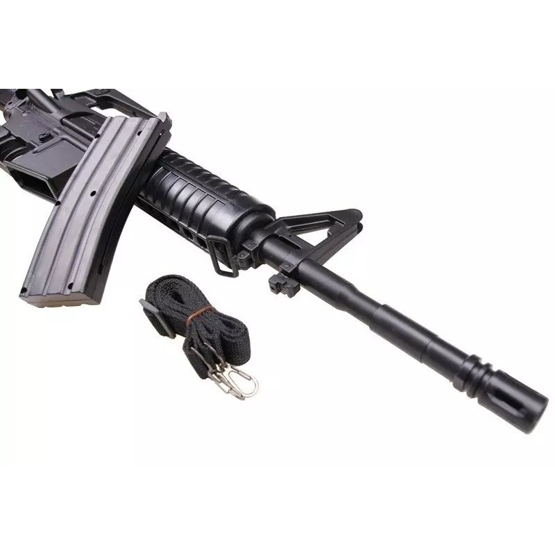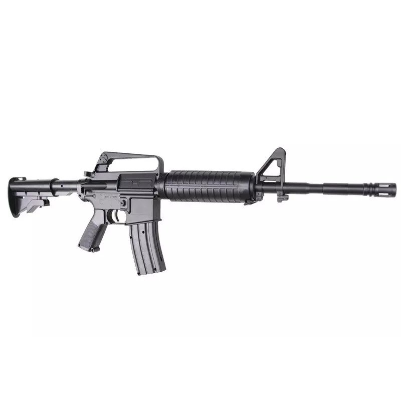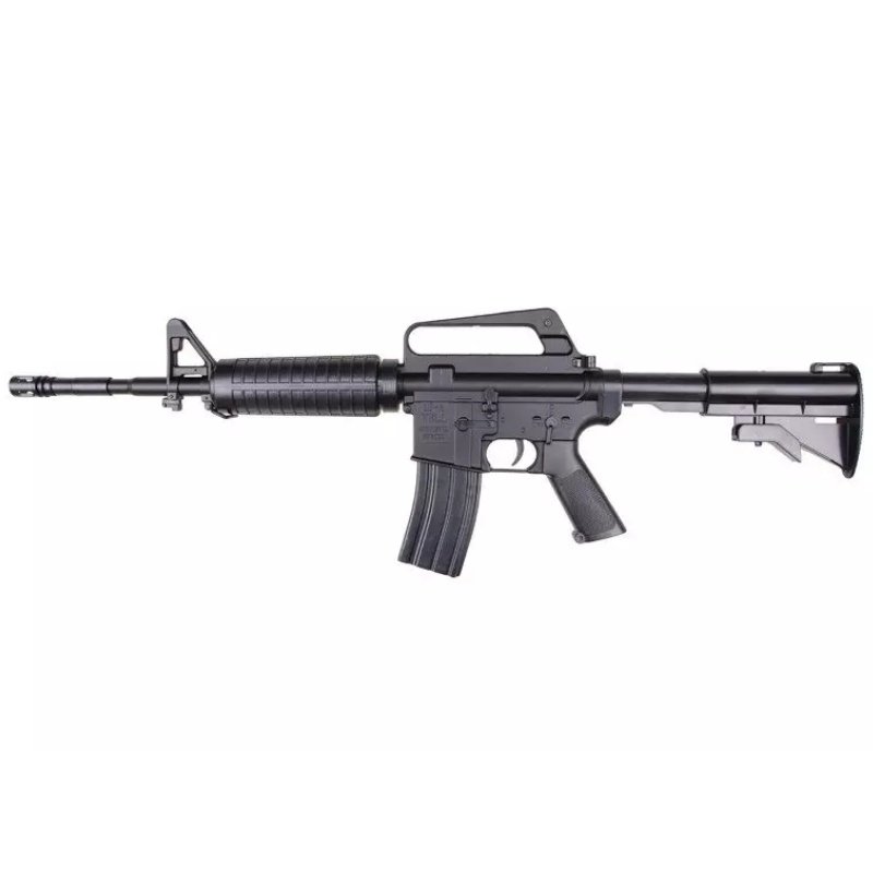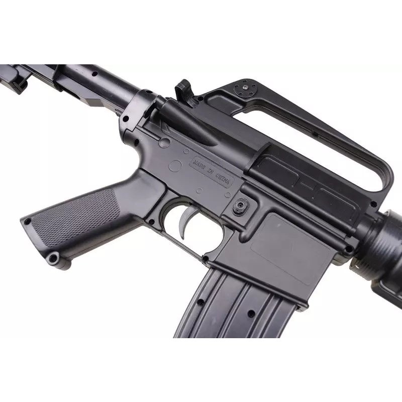 producer WELL Model variants 11242 Guarantee 24 months Package weight 1.14 kg Gun model M4 series Type of airsoft gun propulsion Spring guns Gun body material Plastic Color Black Muzzle velocity 85 m/s Gearboxes Atypical version -