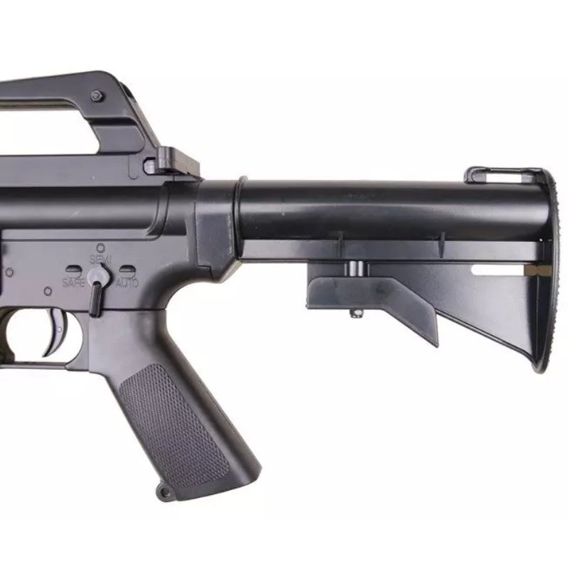 The MR-711 assault carbine replica has been made from highly durable ABS. It is characterised by good workmanship and attention to detail such as the adjustable sight in the carry handle. The appearance of this model is reminiscent of early versions of the Colt 933 Commando carbine eagerly chosen by special forces of many countries. This model features a 5-position folding stock known from the M4 carbine. This allows us to adjust the replica even better to our shooting stance.