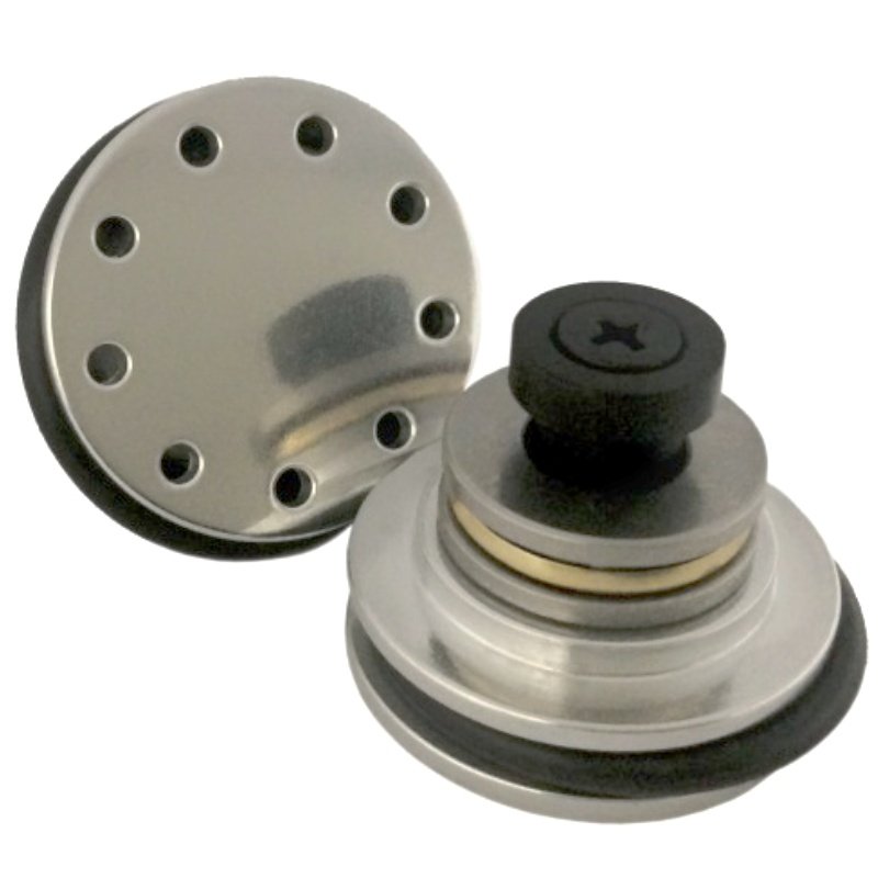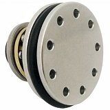The piston head is made of duralumin EN AW 6012 T6 on the CNC machining centre. Nine holes are drilled on the front side.The air stream flows through these holes during compression thus expanding the O-ring which provides for better sealing of the space between the piston head and the cylinder.