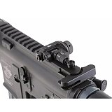 - air sealed, metal nozzleThe replica is equipped with a top 22mm RIS rail, a set of front 22mm RIS rails and an adjustable stock. The top RIS rail holds the flip-up type iron aiming sights which can be easily detached and replaced with any optical-electronic aiming devices. Thanks to the collapsible stock which is ended with a anti-skid stock’s foot, it is possible to adapt the replica’s length to the built and the preferences of the shooter. The default muzzle flash-hider is placed on a 14mm counter-clockwise thread what allows the attachment of a sound suppressor in its place.