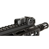 The Upgraded version is fitted with a 22mm dorsal RIS rail, a set of front MLOK rails and an adjustable SF-type stock. A flip-up sighting device has been fitted on the upper RIS rail, but can be freely replaced by any optoelectronic sighting device. Thanks to the sliding buttstock finished with a foot with an anti-slip texture, it is possible to adjust the length of the replica to the build and preferences of the shooter. The flame suppressor is mounted on a 14-mm left-hand thread, which makes it possible to attach a sound suppressor in its place.