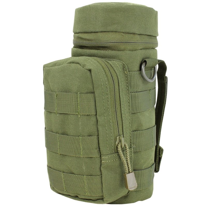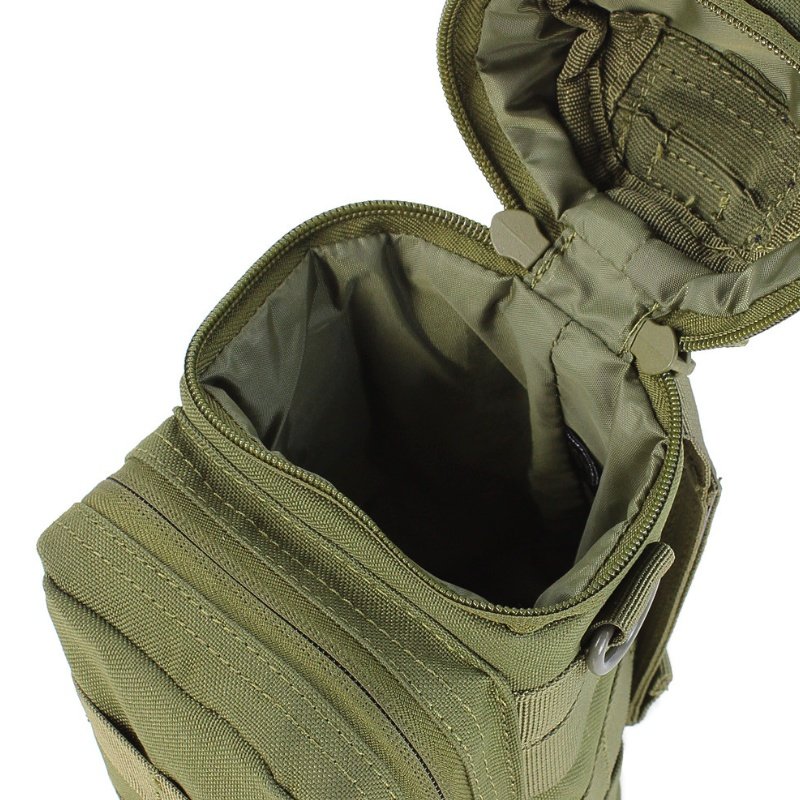 Make sure you're hydrated and ready to tackle any mission or outdoor activity with this Condor water bottle pouch. The Condor H2O Pouch is designed for you to carry your water bottle hands free by using a shoulder strap, belt, or modular webbing. The padded main compartment keeps your water bottle secure with a zippered top closure. This water bottle holder also features a hydration tube pass-thru, allowing you the option to enjoy hands-free hydration while you're on the move. The front utility pocket features a secure zipper closure and can be used to carry additional accessories or supplies. With heavy-duty webbing for modular attachments, this MOLLE water bottle pouch is compatible with a variety of gear, including backpacks and belts. The H2O Pouch from Condor Outdoor offers a versatile option for storing your water nearby.