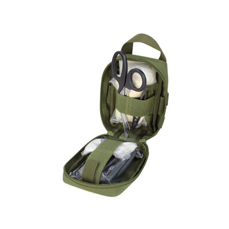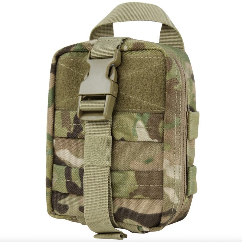 Easily access medical supplies in an emergency with the Rip Away EMT Lite Pouch from Condor Outdoor. The Condor EMT Lite is the redesigned personal version of the MA41 Rip Away EMT Pouch, which was intended to treat multiple patients. This bag's compact design is perfect for storing a complete first aid kit (IFAK) for a single person. Additionally, the outside MOLLE webbing can be used to secure various modular attachments, chem-lights, tourniquets, and other helpful accessories. Prompt deployment is a priority with this medical bag's design, which includes a grab handle for tear-away transfers or loadout switching as well as a rapid access pull tongue to open the pouch. A hook and loop panel can be used to display an ID, and the zipper closure has dual sliders that secure your supplies within. Use this Condor EMT Lite first aid bag to keep medical essentials safely stored in a space-conserving kit.