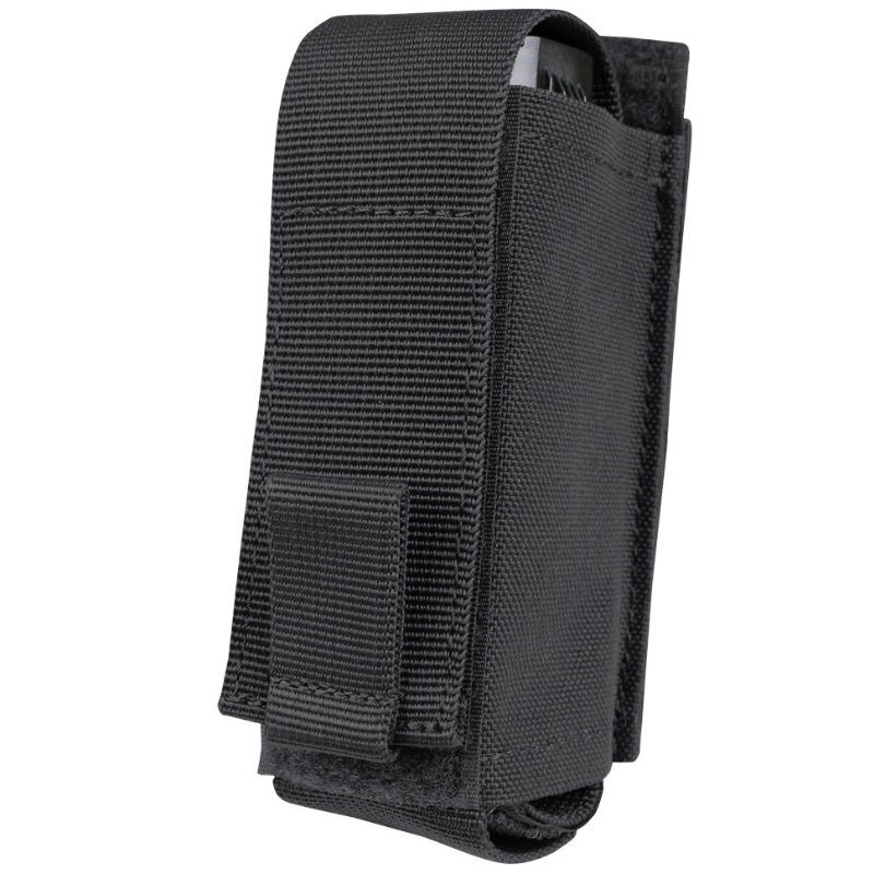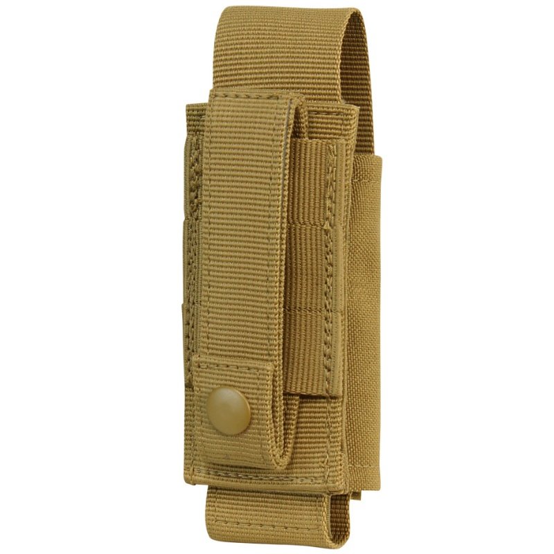 The OC Pouch from Condor Outdoor Products, Inc. is designed with performance in mind. The pouch has an adjustable flap and an elastic placeholder to provide enough structure to access and replace aerosols. The simple flap-style cover protects the aerosol container, prevents it from being accidentally deployed, and keeps the spray secure. The pouch comes in standard colors including Olive Drab (001), Black (002), Navy (006), and Coyote Brown (498). Pouches are sold individually and do not come with aerosol spray.