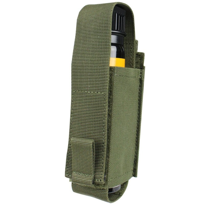 Ensure rapid access to critical chemical sprays when required by choosing an OC Pouch from Condor Outdoor Products, Inc. Bear spray, pepper spray and other aerosols can be housed in the pouch and attached to the outside of a uniform, vest, or chest carrier for rapid access in the field, on a trail, or on a mission. The OC Pouch features a four-inch MOD strap to attach the pouch to an existing MOLLE webbing system.