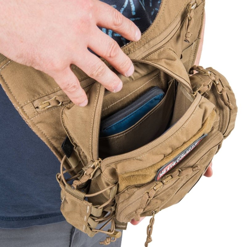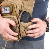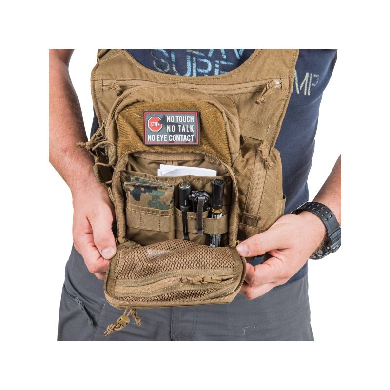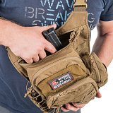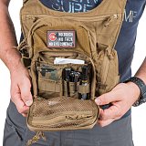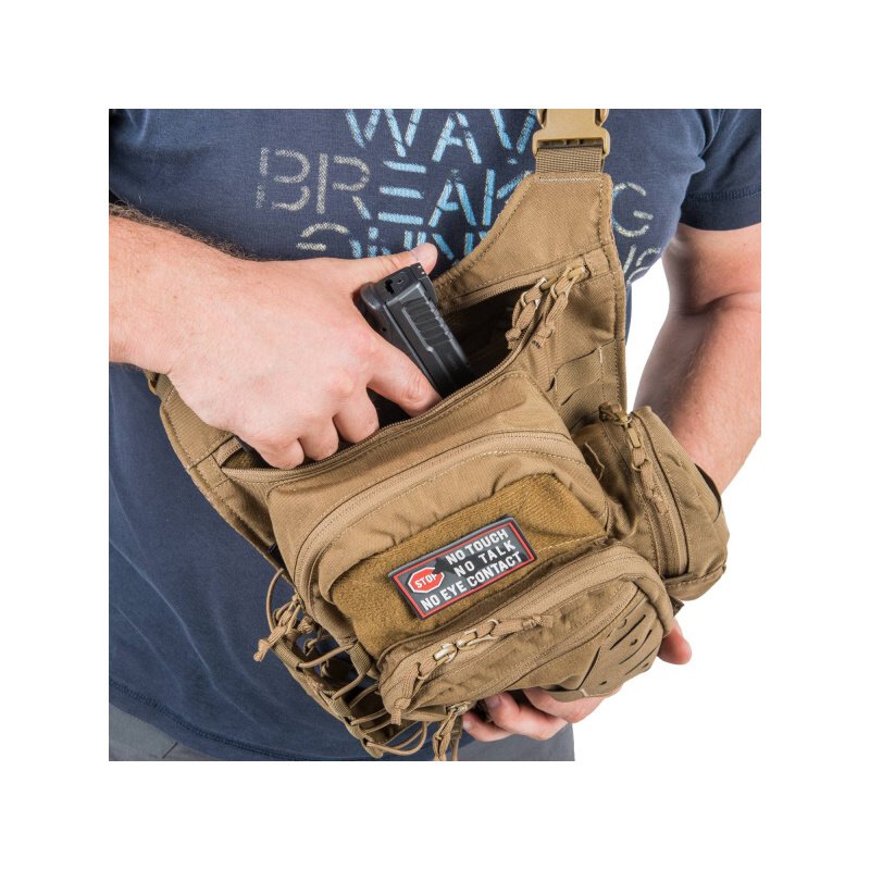 EDC Side Bag is a compact, universal bag for everyday equipment. The bag has spacious main compartment for larger items, and small front pocket with internal organizer. On one side of the bag there is one small pocket for small essentials, and on the other side there is a universal, shock-cord adjustable water bottle/jacket holder. Front laser cut MOLLE/PALS system provides additional mounting space for extra pouches or other equipment. EDC Side Bag has additional, hidden pocket that can be used to carry a full size handgun (either pistol or revolver). The pocket can also be used for mounting any Versatile Insert System compatible items.