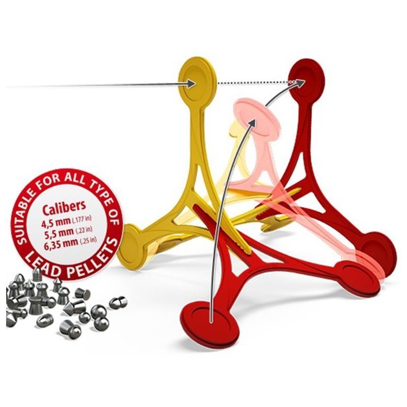 The target is composed of two colored parts, during the hit the red alternates with the reflective yellow color, so you can easily recognize the success of the hit and you do not have to go to the target after each shot to reset it.