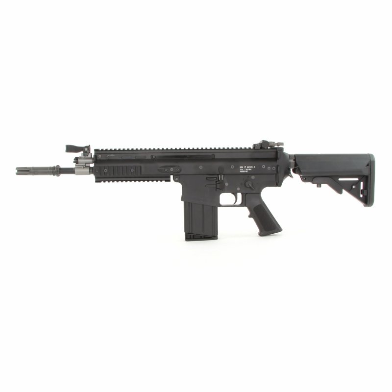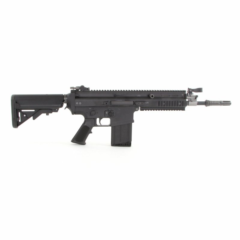 The Special Operation Forces Combat Assault Rifle (SCAR) was developed by Belgian arms manufacturer FN Herstal (FNH) as a reliable, low maintenance, modular combat rifle for the United States Special Operations Command (SOCOM) to replace the tried and true M4A1 carbine used by Special Forces units across various branches of the US Military.The FN SCAR features ambidextrous controls such as an ambi selector and mag release as well as a reversible charging handle allowing the operator to configure the rifle to their preference. The CNC one piece upper receiver features an uninterrupted Picatinny top rail with two removable side rails and a bottom rail to mount any MIL-STD-1913/Picatinny accessories. The high strength polymer lower receiver helps cut down on the over-all weight of the rifle while still maintaining most of the controls of the already familiar M4/M16 system. The telescoping, folding stock allows the rifle to be fully adjustable for length of pull to accommodate any operator. With the stock folded, the SCAR offers a significantly lower profile than even the M4A1 allowing for easy storage and transportation.